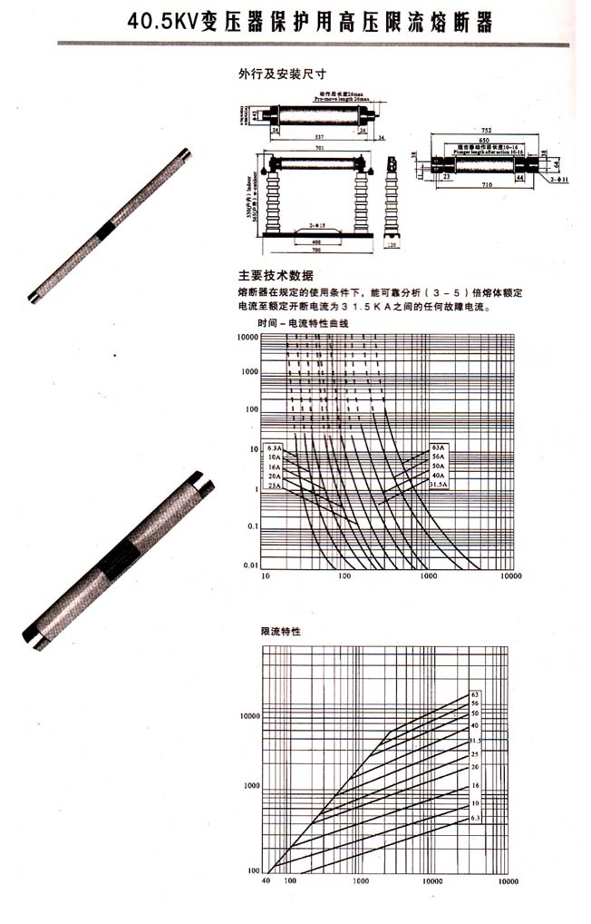 限流式跌落熔斷器具有良好的開(kāi)斷性能,最大開(kāi)斷能力可達(dá)20KA,額定開(kāi)斷已經(jīng)做到16KA。并且具有全范圍開(kāi)斷能力,能滿足國(guó)內(nèi)電網(wǎng)98%地方的要求。再之,在開(kāi)斷18KA時(shí),限流峰值僅有1.63KA,這種強(qiáng)限流能力更是電網(wǎng)求之不得的優(yōu)良之處。它可以更好的保護(hù)電力系統(tǒng)免受動(dòng)、熱損壞。