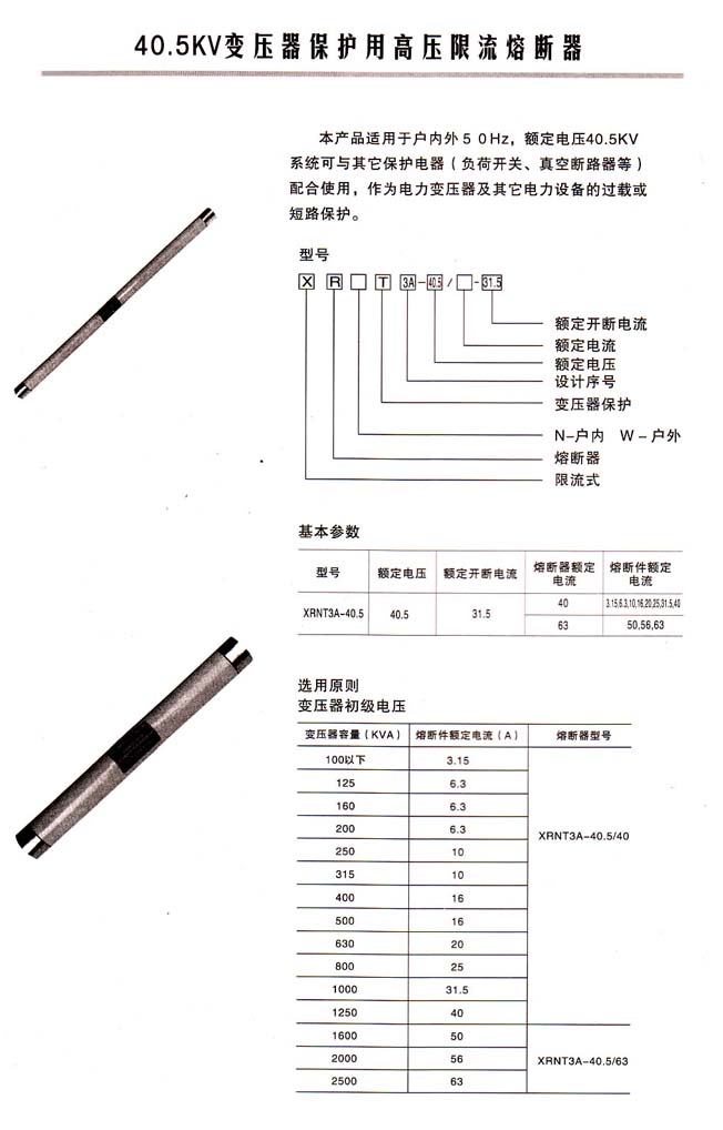 限流式熔管,可以安裝在任何型號(hào)的跌落上。現(xiàn)在為了將線路商議安裝的跌落熔斷器直接換成限流熔管,所以,首先生產(chǎn)的型號(hào)選擇了RM11型,但由于是限流熔管,所以叫做XRW11型。